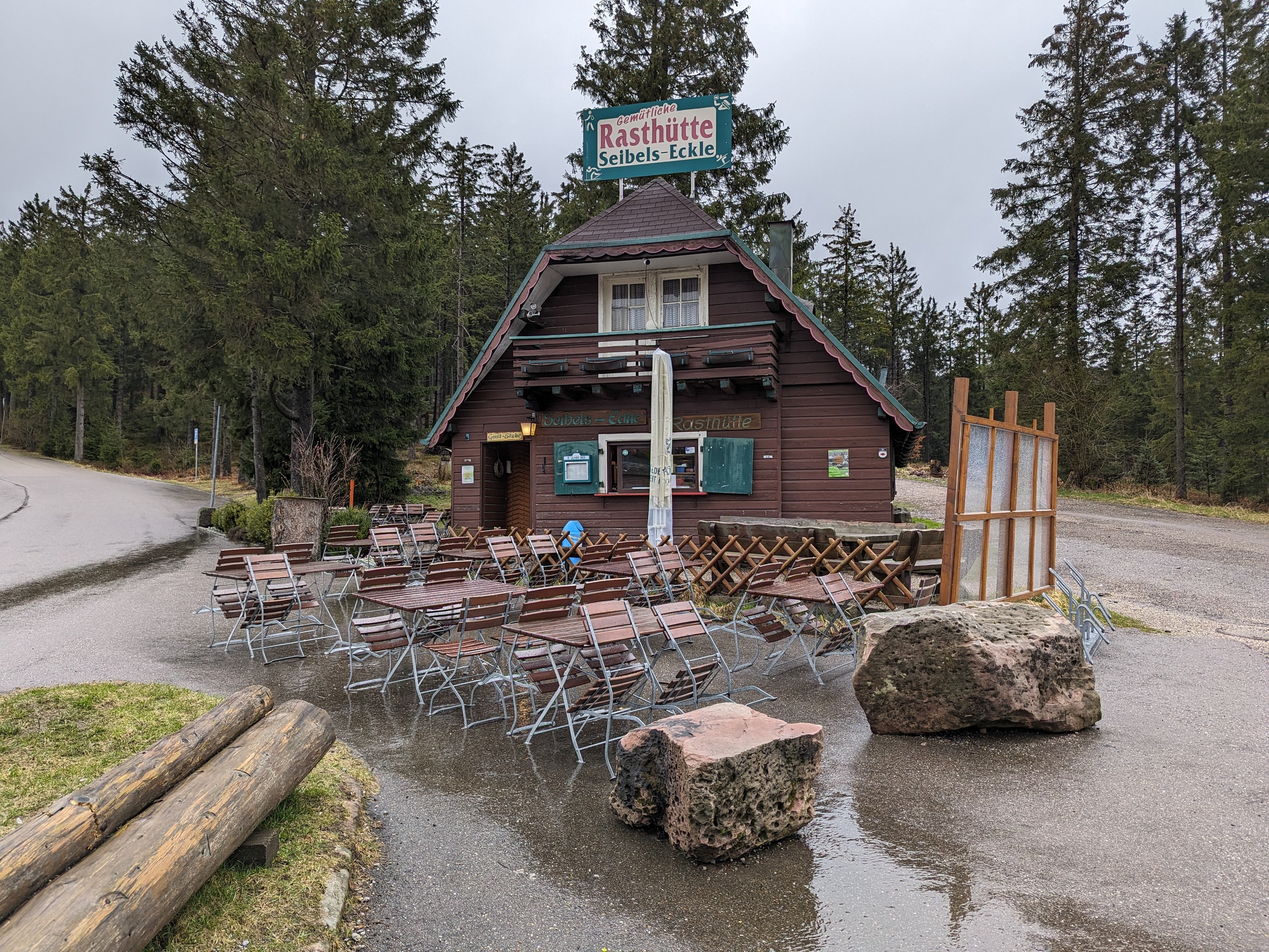 Da weint nicht nur der Himmel. Rasthütte am Seibelseckle (Foto vom März 2024) – und wieder verschwindet ein historisch erhaltungswürdiges Gebäude an der Schwarzwaldhochstraße. Kellerdecke und Balkon sind baufällig: „Die Hütte ist nicht mehr zu retten“, heißt es offiziell. Leicht gesagt, wenn man gar keine Interesse daran hat. Ein Jammer. Aktuell wird via-à-vis für 2,5 Millionen Euro ein moderner Neubau errichtet. Die Fertigstellung ist bis Ende 2026 geplant.