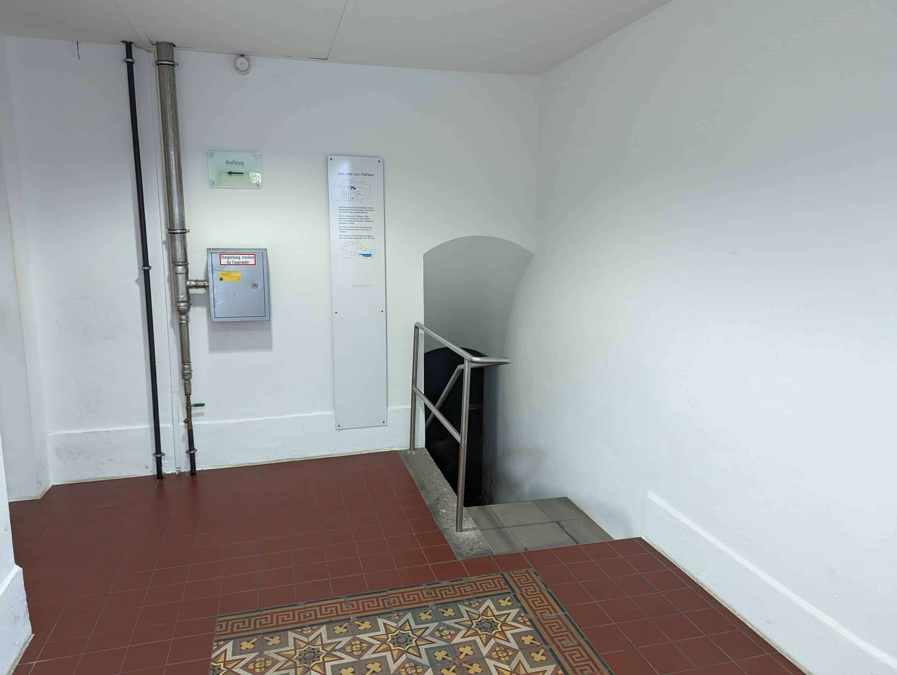 Foto: Das erste Empfangsgebäude im Stadtbahnhof (historische Ansichtskarte)